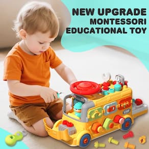- ?Presentes Montessori tudo-em-1?Duas seções principais de desbloqueio, seis modos de desbloqueio diferentes. Cada lado do cubo ocupado do ônibus tem diferentes atividades educacionais. Não é apenas um brinquedo para crianças, mas também um presente ideal para aniversários, festivais ou ocasiões especiais.