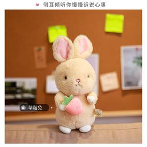Material: pelúcia Tamanho: 25 cm Charming Bunny with Strawberry Design — Apresenta um coelho bege macio com orelhas internas rosadas, segurando um pequeno morango de pelúcia para dar um toque doce e divertido. Tecido de pelúcia macio e suave — Feito de material de pelúcia de alta qualidade que é suave e aconchegante, perfeito para abraçar e aconchegar. Tamanho compacto e leve — Com 25 cm, é fácil para as crianças segurarem, carregarem e exibirem como um lindo toque decorativo em quartos ou creches. Construção durável e adequada para crianças — Feita com costuras fortes e materiais não tóxicos, garantindo brincadeiras seguras e duradouras. Estilo fofo inspirado em desenhos animados — combina características clássicas de coelhinho com detalhes suaves em tons pastel, atraente tanto para crianças quanto para colecionadores de pelúcia.