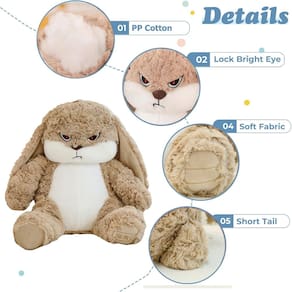 Pelúcia Angry Lop Eared Rabbit, bicho de pelúcia Coelhinho Marrom da Páscoa, lindo brinquedo de pelúcia Kawaii, pelúcia macia de coelhinho Kawaii para crianças e adultos, presentes de Páscoa