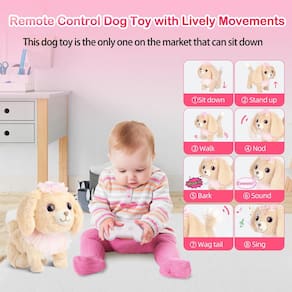 - Brinquedo para cachorros com controle de toque e voz: este brinquedo interativo para crianças pode sentar, ficar em pé, acenar com a cabeça e abanar o rabo por meio de comandos de toque e voz! Com um simples toque na cabeça do cão ou um som, as crianças podem fazer com que o cão realize movimentos divertidos e realistas, proporcionando horas de brincadeiras interativas. Este brinquedo de pelúcia para cães não é apenas adorável, ele foi projetado para parecer um cachorrinho de verdade, tornando-o o companheiro perfeito para crianças.