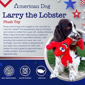 American Dog Larry The Lobster — Brinquedo de pelúcia durável para cães fabricado nos EUA com material de lã macia, seguro para animais de estimação e lavável à máquina para união, diversão, estimulação mental, exercícios, treinamento e muito mais