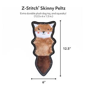 Brinquedos de pelúcia ZippyPaws Z-Stitch Skinny Peltz, brinquedo para mastigar sem recheio e tênis para cães pequenos e médios, 12,5 polegadas, esquilo