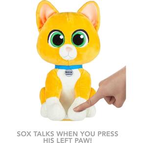 - Com som inspirado no filme, este brinquedo de pelúcia Sox trará de volta toda a emoção da emocionante aventura animada. Basta apertar a pata esquerda para ativar!