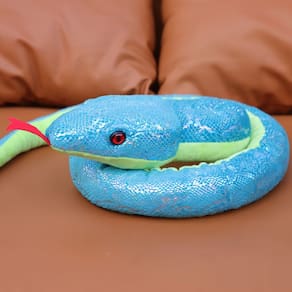 Material: pelúcia Tamanho: 170 cm Aparência vibrante de cobra azul — Projetado com tecido de pelúcia brilhante com textura de lantejoulas, este brinquedo realista de cobra em espiral apresenta um corpo azul vívido, olhos vermelhos e língua vermelha brilhante. Corpo extra longo de 170 cm — O tamanho estendido o torna adequado para abraçar, se enrolar na cama ou ser exibido como um acessório de quarto extravagante ou adereço de brincadeira. Material macio e confortável — Feito de pelúcia premium, oferece uma sensação suave e fofinha que crianças e colecionadores de pelúcia vão adorar. Charme divertido de desenho animado — Com olhos vermelhos exagerados parecidos com desenhos animados e uma pose de descanso enrolada, ele atrai crianças e fãs de decoração com temas de animais. Mascote Zodiac Snake 2025 — Uma figura simbólica de pelúcia para celebrar o Ano da Cobra, ideal para a atmosfera de Ano Novo e contar histórias culturais.