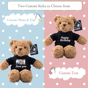 Presentes personalizados para mulheres e homens, ursinhos de pelúcia com texto personalizado, ursinho de pelúcia personalizado com camiseta como presentes especiais para o aniversário de Natal e Dia dos Namorados (texto e foto de 13 polegadas) -?Personalizável?A qualidade editável de nosso ursinho de pelúcia permite que você adicione qualquer coisa, um nome, o logotipo da escola ou sua bênção. Com um visual atraente e real, é um excelente presente personalizado para ele/ela/amigos/familiares/graduados, etc. Clique em “Personalizar agora” e faça o upload de suas informações personalizadas. Deixe que este urso de dia dos namorados fale por você! -?Material de alta qualidade?Feita de pele de alta qualidade, nossa pelúcia de urso é macia e confortável, fácil de lavar devido à sua fabricação à prova d'água. Você certamente se apaixonará por ela! As formas são projetadas por designers de renome mundial e produzidas por trabalhadores qualificados para garantir que seu texto personalizado seja impresso com precisão. Com olhos brilhantes e uma expressão confiante, o pelúcia Teddy Bear simboliza coragem, vigor e autoconfiança. -?Reconfortante e significativo?Totalmente costurado à mão e cuidadosamente feito, como uma obra de arte, nosso ursinho de pelúcia é adequado para mostrar seus parabéns e incentivo de uma forma especial, exclusiva de seu relacionamento. Com certeza os fará rir! Será um parabéns muito emocionante e inesquecível, ela/ele ficará emocionada e guardará este presente personalizado com eles por muitos anos. -?Presentes impressionantes?Nosso ursinho de pelúcia de Dia dos Namorados agradam a todas as idades, perfeitos para presentear em várias ocasiões, como: presentes de aniversário/Dia dos Namorados/Natal/formatura para ela e ele/formatura universitária! Este presente personalizado é uma bênção muito sincera que certamente impressionará o destinatário por muito tempo e o guardará por muitos anos como uma lembrança linda e preciosa para você e ele/ela. -?Excelente satisfação garantida?Basta expressar parabéns e incentivo aos seus amigos/familiares adicionando uma foto ou um texto engraçado aos presentes personalizados do ursinho de pelúcia. É nossa principal prioridade fornecer uma experiência satisfatória e de alta qualidade aos nossos clientes. Se você tiver alguma dúvida, sinta-se à vontade para entrar em contato conosco a qualquer momento, sempre tomaremos medidas imediatas para garantir a excelente satisfação do cliente.