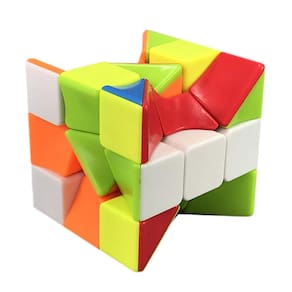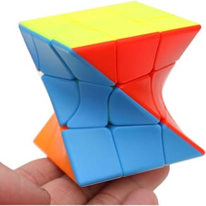Cubo de velocidade sem adesivo YUNTENG Cube Twist 3x3 que aparece como se a camada amarela tivesse sido torcida à força em 90 graus em relação à camada branca, distorcendo as outras camadas no processo.