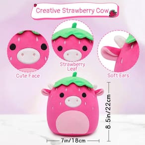 -?Super Soft Strawberry Cow?: O brinquedo de pelúcia para vacas é feito de pelúcia curta e macia e preenchido com algodão PP macio. Macio e agradável à pele, sem desbotamento. O tecido macio e elástico é perfeito para abraçar e cada boneca Strawberry Cow passou por vários testes de qualidade para que você possa abraçá-la com confiança!