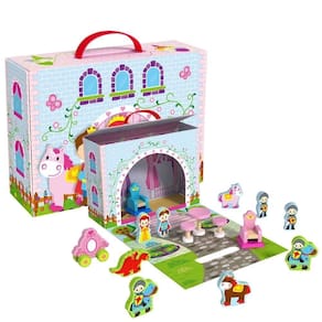 Brinquedo Didático Caixa Divertida Castelo Tooky Toy Informações do produto Caixa Divertida - Castelo Tooky Toy ou Princess Story Box em seu nome , possibilita com que as crianças usem a imaginação e brinquem em qualquer lugar com essa linda caixa com tema castelo da princesa. Quando aberta, a Caixa Divertida - Castelo Tooky Toy forma um lindo castelo, acompanhada de 16 peças para compor o cenário: princesa, cavaleiros, uma carruagem e muito mais.