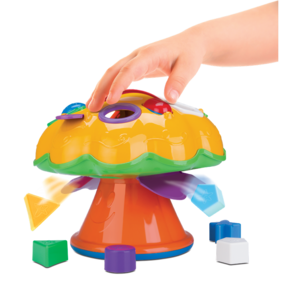 Com o Brinquedo Didático Cogumelo Diver for Baby, seu bebê poderá encaixar as peças geométricas de forma divertida e interativa. As portas se abrem quando o cogumelo é pressionado para baixo, ensinando ao bebê a relação de causa e efeito.