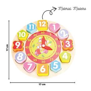 BRINQUEDO DIDÁTICO DE MADEIRA RELÓGIO COM 13 PEÇAS - DMT5736.