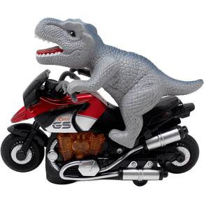Brinquedo Dinossauro Motoqueiro Bate e Volta Luz Som À Pilha Cinza -
