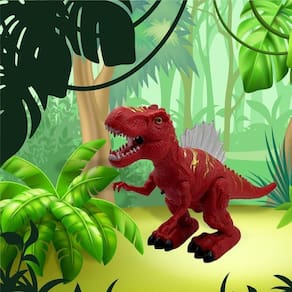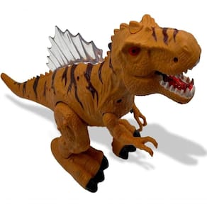 As crianças Adoram esse dinossauro porque ele anda, acende luzes e emite som.