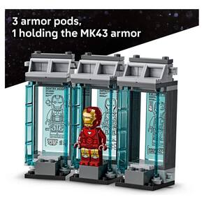 Brinquedo Do Hall Of Armor Do Homem De Ferro Lego 76315 LEGO - O Laboratório do Homem de Ferro da Marvel: Brinquedo de Construção Sala das Armaduras 76315 - O conjunto de construção Laboratório do Homem de Ferro: Sala das Armaduras 76315 leva jovens Super-Heróis e fãs dos filmes dos Vingadores da Marvel ao icônico laboratório do Homem de Ferro. Cheio de figuras LEGO Marvel e recursos legais para inspirar aventuras imaginativas, este conjunto de construção, jogos e exibição para crianças é um presente ideal para crianças de 8 anos em diante. O brinquedo LEGO Marvel montável inclui 3 cápsulas de armadura e 3 mini figuras do Homem de Ferro: MK1, MK43 e MK6. O lineup é completado pelas mini figuras da Pepper Potts e do vilão Aldrich Killian, um robô construível Dum-E e um grande mecanismo Igor do Homem de Ferro MK3 com braços e pernas móveis e uma cabine com espaço para uma mini figura. Outras características incluem uma plataforma de manutenção com 2 braços estilo robô e um grande dispositivo de escaneamento. Também inclui um extintor de incêndio e 2 acessórios de fogo, bem como 2 lançadores de pinos para quando a ação de batalha começa. Para mais diversão digital, os construtores podem fazer zoom, girar os modelos em 3D e acompanhar seu progresso usando o divertido e intuitivo aplicativo LEGO Builder. O conjunto contém 384 peças. - Itens incluídos: