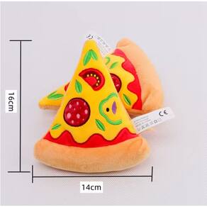 Características: - Modelo: Pizza; - Cor: Colorida; - Material: Poliéster; - Com som; - Tamanho: 16cm de comprimento x 14cm de largura x 3cm de altura.