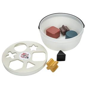 -Balde com espaços de encaixe: desenvolve a coordenação olho-mão e o reconhecimento de padrões.