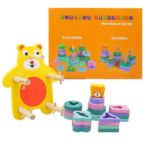 Brinquedo confeccionado em madeira, ótimo para exercitar a concentração, coordenação motora, percepção de cores e aprendizagem com cálculos.