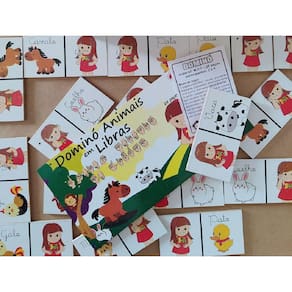 Brinquedo educativo domino animais em libras mdf 28 peças - carlu Domino animais em libras mdf 28 peças - carlu