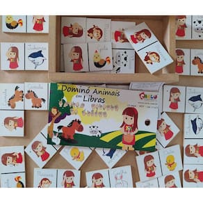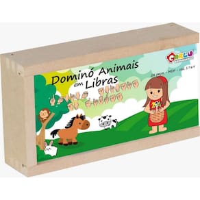 Brinquedo educativo domino animais em libras mdf 28 peças - carlu Domino animais em libras mdf 28 peças - carlu
