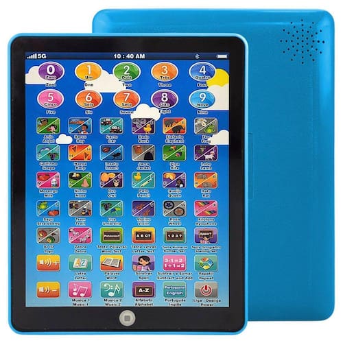 Brinquedos educativos são importantes na vida das crianças, pois além de serem uma forma de diversão, também podem auxiliar no desenvolvimento físico, cognitivo e emocional dos pequenos. As brincadeiras podem ajudá-las a aprender novas habilidades, a se socializar com outras crianças e a desenvolver a criatividade e a imaginação.Este tablet infantil educativo bilíngue em inglês e português da art brink é indicado para crianças a partir de 2 anos de idade e tem de tudo um pouco, joguinhos de somar, subtrair, soletrar palavras, botões com animais, frutas, meios transportes e objetos do dia a dia, além de músicas, números e letras.Entre os benefícios que este brinquedo pode proporcionar estão o aprendizado do inglês, do alfabeto, palavras e números, o estímulo visual e auditivo e a habilidade tátil.Conteúdo da embalagem: 1 tablet infantil interativo bilíngue Homologação Inmetro: 7355/2021-BRI-1