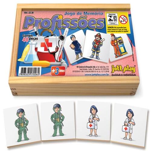 Jogo de memória educativo composto por 40 peças em MDF com figuras "vivas e coloridas" , visando que a criança associe os "pares" num processo lúdico de aprendizagem.