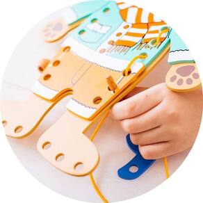 O alinhavo é uma ferramenta muito útil no desenvolvimento da coordenação motora da criança e no desenvolvimento da habilidade manual fina, pois a criança precisa passar o barbante pelos locais marcado e assim pode desenvolver melhor certas habilidades.