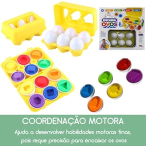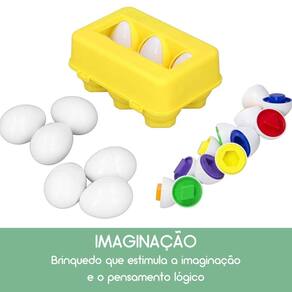 Brinquedo Educativo Montessori Infantil Caixa de Ovos Encaixe Brinquedo Educativo Montessori Infantil Caixa de Ovos De Encaixar Formas Geométricas Cores Sensorial Brinquedo Educativo versátil que incentiva a imaginação e o pensamento lógico da criança Os ovos de Encaixar Egg Matching Toy , são perfeitos para brincar e ao mesmo tempo aprender as formas, cores, ação e reação, estimula a coordenação motora; O ovo é fabricado de material plástico de qualidade, seguro e resistente Também pode ser para fazer um jogo da memória, carimbo, brinquedo para banheira... As possibilidades de brincadeiras são infinitas Cada ovo revela uma forma diferente para a criança encaixar e aprender - Marca: Paki Toys - Dimensões: 26,5 x 26,5 x 7 cm - Dimensões do Produto: - Referência: 4088 - Faixa Etária: indicado para crianças à partir de 12 meses - Contém: 1 estojo e 6 ovos para montar com cores e formas diferentes - EAN: 7898676721236 - Certificado pelo INMETRO Registro 001586/2022 CE-BRI/ICEPEX-N-01398-64 Na Tralalá 4 Kids, dedicamo-nos a transformar aprendizado em diversão, oferecendo brinquedos pedagógicos de qualidade para o desenvolvimento integral da criança. Homologação Inmetro: CE-BRI/IQB 006429 54879/21-001 Marca: Não Informado