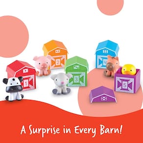 Há mais do que feno dentro desses celeiros — há aprendendo a fazenda aprendendo diversão! As crianças aprendem habilidades de contagem, cor, correspondência e classificação durante cada aventura imaginativa com os amigos da fazenda encontrados dentro da Fazenda Peekaboo de Recursos de Aprendizagem. Cada um dos 5 celeiros numerados de duas peças do conjunto vem em uma cor vibrante diferente, incluindo vermelho, laranja, azul, verde e roxo. Cada celeiro também abre para revelar 5 bonecos de dedos de animais diferentes — conheça a vaca, porco, frango e muito mais do set! Ao contrário de muitos brinquedos para crianças, o Peekaboo Learning Farms cresce junto com o seu pequeno — construa novas habilidades motoras finas durante os primeiros jogos de fingir, em seguida, passar para a matemática precoce e identificação de cores! Encontre os animais durante jogos de esconde-esconde, faça seu próprio jogo de memória, ou apenas deixe sua imaginação ir! Os celeiros de duas peças da Peekaboo Learning Farm também ajudam as crianças a construir coordenação e outras habilidades motoras finas cada vez que as abrem ou as fecham.