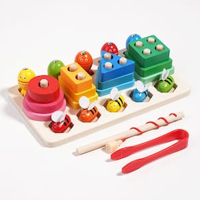 Especificação Material: Madeira Cor: cor mista Tamanho do pacote: 22,5 x 13 x 5,3 cm Peso da embalagem: 0,5 kg Lista de embalagem: 1 x brinquedo educativo Este conjunto de brinquedos para pesca de abelhas e classificação de formas ajuda as crianças a desenvolver a coordenação olho-mão, habilidades motoras e habilidades cognitivas combinando e capturando formas geométricas com peças divertidas e interativas em forma de abelha. Feito de madeira de alta qualidade, este brinquedo educacional é durável e seguro para crianças pequenas. O design de cores mistas é visualmente atraente, mantendo as crianças envolvidas e promovendo o aprendizado por meio de brincadeiras e reconhecimento de formas. O conjunto de brinquedos introduz o reconhecimento e a classificação de formas geométricas, incentivando as crianças a entender formas, cores e relações espaciais, que são habilidades essenciais para o desenvolvimento da primeira infância. Perfeito para crianças em idade pré-escolar, este brinquedo aprimora as habilidades de resolução de problemas e combinação, fazendo com que as crianças classifiquem e combinem formas com os anzóis correspondentes. É uma ótima maneira de introduzir conceitos cognitivos básicos de forma lúdica. Leve (500 g) e compacto (22,5 x 13 x 5,3 cm), este conjunto de brinquedos é fácil de guardar e transportar, tornando-o uma opção ideal para viajar ou brincar em casa. Ele oferece horas de aprendizado divertido, onde quer que você vá.