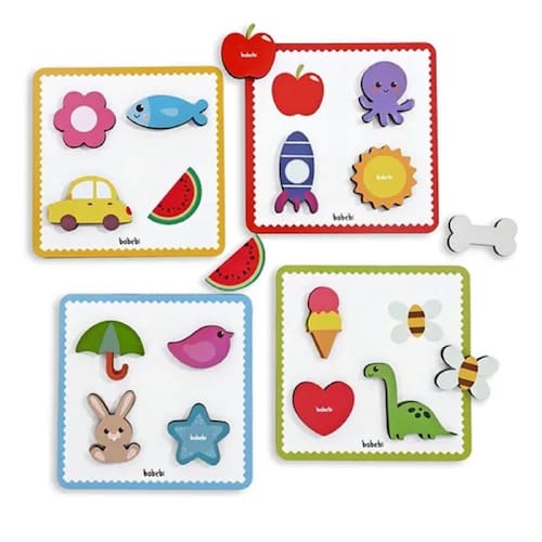 Características; - Material: Maeira reflorestada - Medidas tabuleiros: 18,1cm (comprimento) x 18,1cm (largura) x 0,2cm (espessura) - Medidas aproximadas das peças: 6cm (largura) x 8cm (altura) x 0,5cm (espessura) - Conteúdo da embalagem: 17 peças + 4 tabuleiros + 1 saco de pano + 1 regra do jogo - Idade recomendada: a partir de 3 anos - Quantidade de jogadores possíveis: de 2 a 4. - Estimula o tato e habilidades motoras.