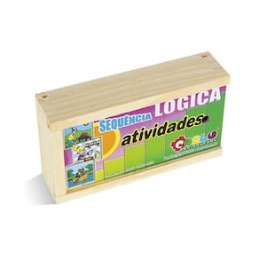 Brinquedo Educativo Sequençia Logica Atividades - Confeccionada em madeira e M.D.F., 16 peças de 7 x 7 cm. Embalagem: Caixa de madeira medindo 17 x 9,5 x 4,5 cm. Lacrada com película de P.V.C encolhível. Produto com certificação do INMETRO. Produto com certificação do INMETRO CE-BRI/ICEPEX - N 00928-96
