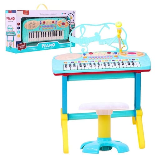 O Teclado Musical com Banco e Microfone da Castela é um instrumento de brinquedo projetado especialmente para crianças em idaar, entre 3 a 8 anos, oferecendo uma introdução divertida e educativa ao mundo da música. Esse brinquedo completo é composto por um piano colorido com teclas de plástico, banco confortável e microfone integrado, permitindo que os pequenos toquem, cantem e desenvolvam seu talento artístico enquanto se divertem.
