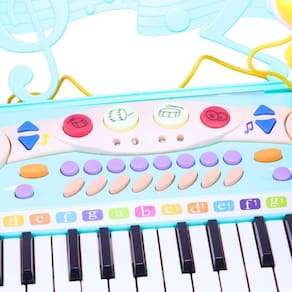 - Teclado infantil eletrônico, com 25 a 37 teclas de plástico macias e resistentes a impactos. - Som eletrônico de alta qualidade, com alto-falante integrado. - Melodias, ritmos e efeitos sonoros pré-gravados, que estimulam a criatividade e o aprendizado musical. - Microfone conectado ao teclado, ideal para performances vocais. - Design colorido e atraente, pensado para capturar a atenção das crianças e estimular o jogo imaginativo.