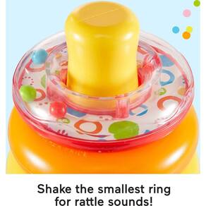 - Ajuda a desenvolver habilidades motoras finas e habilidades motoras grossas enquanto o bebê agarra, balança e empilha os anéis