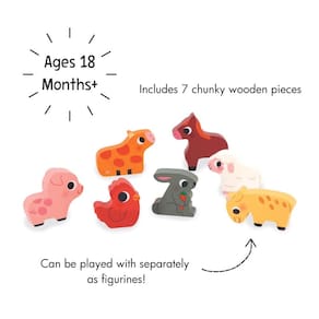 Atenção a todos os futuros fazendeiros! Descubra nosso quebra-cabeça de madeira com tema de fazenda, projetado para bebês com 18 meses ou mais. Este brinquedo de aprendizado precoce é composto por 7 peças grossas que podem ser facilmente seguradas pelas mãos pequeninas. Cada peça do quebra-cabeça foi cuidadosamente projetada para representar animais de fazenda: um cavalo, porco, galinha, coelho, vaca, ovelha e cabra. E isso não é tudo! Essas peças também podem ser usadas como figuras para estender o tempo de brincadeira e estimular a imaginação de seu filho.