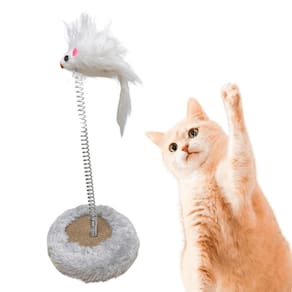 Arranhador Brinquedo Interativo Mola Ratinho com guizo Material: Madeira Compensado, Pelúcia, Mola de Metal