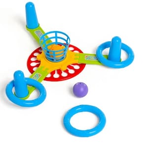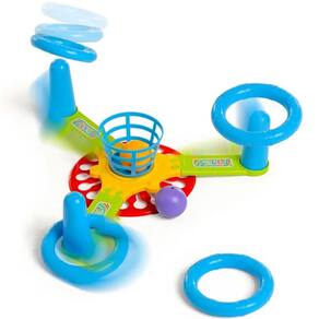 Parece fácil? Então tente acertar 3 argolas nos pinos e jogar 2 bolinhas na cesta? enquanto tudo gira sem parar!