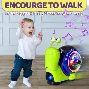 - ?Show de luzes deslumbrantes e música?A capa translúcida do caracol refratou luzes de LED coloridas sincronizadas com uma melodia divertida de 7 segundos de "The Little Goatherd". Estimula o desenvolvimento sensorial e captura a curiosidade das crianças com visuais e som, adicionando um tipo único de diversão à hora de brincar.
