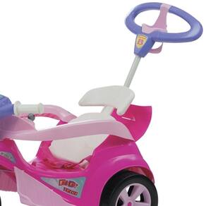4. Ele possui haste para empurrar? R. Sim, ele possui haste removível para empurrar o triciclo.