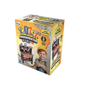 Bancada de ferramentas Adequado para crianças acima de 3 anos. O kit Ferramentas ensina seus filhos que o trabalho pode realmente ser muito divertido. Seus filhos aprendem a ter sucesso e começam a se sentir orgulhosos de suas realizações Medidas da embalagem: 23cm de largura 33cm de altura 15cm de comprimento O kit acompanha: 1 Bancada 4 Parafusos 4 Porcas 4 Réguas perfuradas 1 martelo 2 chave de Fenda 1 Chave de boca 1 Esquadro 1 Alicate Certificado INMETRO: CE-BRI/INNAC - 00152-03A NM 300/2002 Ean: 7896464707615