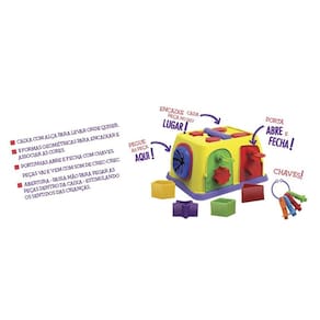 Brinquedo Infantil Caixa De Brincadeiras - Elka 1135 Caixa de Brincadeiras com um monte de atividades Encaixe cada peça no seu lugar. Porta abre e fecha. A embalagem faz parte da brincadeira, recorte, monte e brinque AVISO: As cores podem variar das imagens mostradas acima, imagens meramente ilustrativas Fabricante: Elka Plásticos Ltda Material/ Composição: Plástico atóxico Idade Recomendada: + 12 meses Linha: Primeira Infância Informações Empresa: : 3 Meses contra defeito de fabricação Produto Certificado: REGISTRO 002338/2019 - OCP006 Marca: Não Informado Ean: 7896448111353