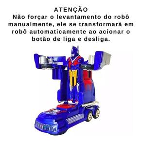 Caminhão Vira Robô Transformers Aventura e Tecnologia em um Só Brinquedo Leve a emoção dos Transformers para casa com este incrível Caminhão Vira Robô Em apenas segundos, ele se transforma automaticamente em um poderoso robô, proporcionando uma experiência cheia de ação e aventura para as crianças. Destaques do Produto: Transformação Automática: Basta acionar o botão para o caminhão se transformar sem esforço. Luzes e Sons Eletrizantes: Efeitos sonoros realistas e luzes vibrantes para deixar a brincadeira ainda mais imersiva. Desenvolvimento Infantil: Estimula a criatividade, coordenação motora e imaginação. Material Durável: Construído com alta qualidade para suportar intensas batalhas imaginárias. Presente Perfeito: Surpreenda as crianças com um brinquedo inovador e cheio de ação. Importante: Não tente forçar a transformação manualmente. O robô se ativa automaticamente ao ligar o brinquedo. Garanta já o Caminhão Vira Robô Transformers e transforme a diversão em uma verdadeira aventura do vendedor: 90 dias Homologação Inmetro: 6711/2021-BRI- 2 Marca: Não Informado Ean: 7892023230112