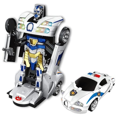 Carro robô bate e volta policia musical que se transforma em um lindo robô. Marca: tesla store Recomendação idade: +3 ano Se transforma em robô, para se divertir e brincar.