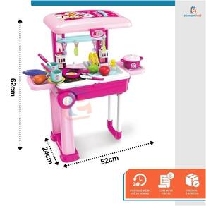 O Kit Chef Cozinha 2 em 1 é aquele brinquedo que proporciona a integração viso-espacial, que compreende a habilidade para gerar imagens, compor objetos, manipular formas e dimensões no espaço. A cozinha maleta 2 em 1 possui diversas comidas e acessórios para seu filho cozinhar, fogão com luzes, pia e escorredor de prato com o objetivo de trazer o faz de conta o mais perto da realidade.