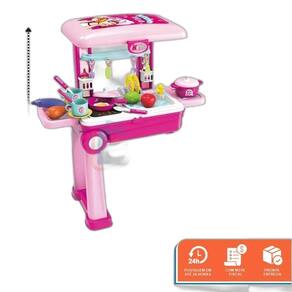 O Kit Chef Cozinha 2 em 1 é aquele brinquedo que proporciona a integração viso-espacial, que compreende a habilidade para gerar imagens, compor objetos, manipular formas e dimensões no espaço. A cozinha maleta 2 em 1 possui diversas comidas e acessórios para seu filho cozinhar, fogão com luzes, pia e escorredor de prato com o objetivo de trazer o faz de conta o mais perto da realidade.