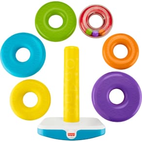 - O clássico brinquedo de empilhamento Fisher-Price torna-se extragrande – mais de 35,5 cm de altura!