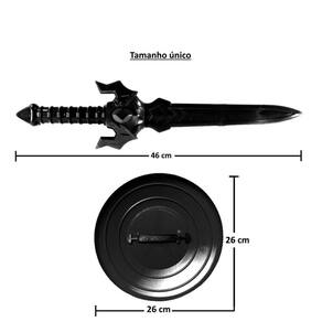 Especificações: - Espada: PEAD - Máscara e Escudo: Polipropileno PP - Dimensões aproximadas: - Espada: 45 cm comprimento - Escudo: 25,5 cm diâmetro - Máscara: 15 cm largura x 15 cm altura - Tons e detalhes podem variar conforme disponibilidade de lote - Idade recomendada: A partir de 3 anos - Registro INMETRO: 001236/2023