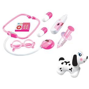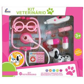 Brinquedo Infantil Kit Veterinário com Acessórios - Rosa- Fenix Estimule a imaginação do seu filho com o Kit Veterinário da Fenix, Um Kit com tudo que um bom veterinário ou veterinária precisa ter. O estetoscópio acende quando você examina. Ao aplicar uma injeção, seu cachorro late de verdade com som . O aparelho de febre mede quantos graus seu bichinho está. O aparelho de ouvido acende uma luz. Uma excelente opção para presentear e com certeza as crianças vão amar Idade recomendada: A partir de 3 anos. Funcionamento: Utiliza 6 baterias Lr-1130 1,5v inclusas . Material: Plástico Pp e Papel Conteúdo da embalagem: 1 kit veterinário com 8 peças. Modelo: VET-586 Medidas: C x L x A 36 x 8 x 32 cm Observe atentamente a idade recomendada para o brinquedo. Fotos ilustrativas as cores e modelos podem sofrer alterações sem aviso prévio. CE-BRI/SARON-N 00116-19 OCP0127