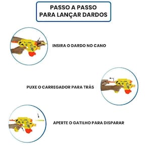 CARACTERÍSTICAS - 1 lançador com 5 dardos macios e 1 reservatório para colocar água. - Idade recomendada: +3 anos - Composição: Plástico - Tamanho da Embalagem (AxLxP): 26x35x6cm - Conteúdo da embalagem: 01 lançador 2 em 1 e 5 dardos Ean: 7898534533650