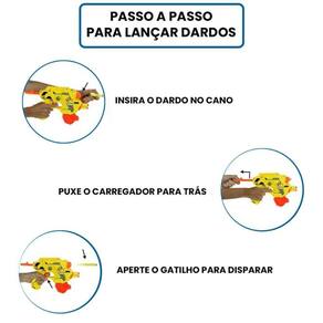 CARACTERÍSTICAS - 1 lançador com 5 dardos macios e 1 reservatório para colocar água. - Idade recomendada: +3 anos - Composição: Plástico - Tamanho da Embalagem (AxLxP): 26x35x6cm - Conteúdo da embalagem: 01 lançador 2 em 1 e 5 dardos Ean: 7898534533650