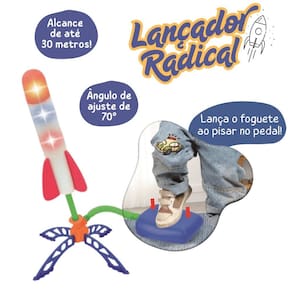Prepare-se para uma brincadeira fora deste mundo com o Lançador Radical Esse incrível lançador de foguete vai transformar qualquer quintal ou parque em uma verdadeira base de lançamento. Com um foguete de espuma superleve que acende luzes coloridas ao voar, a diversão é garantida do começo ao fim